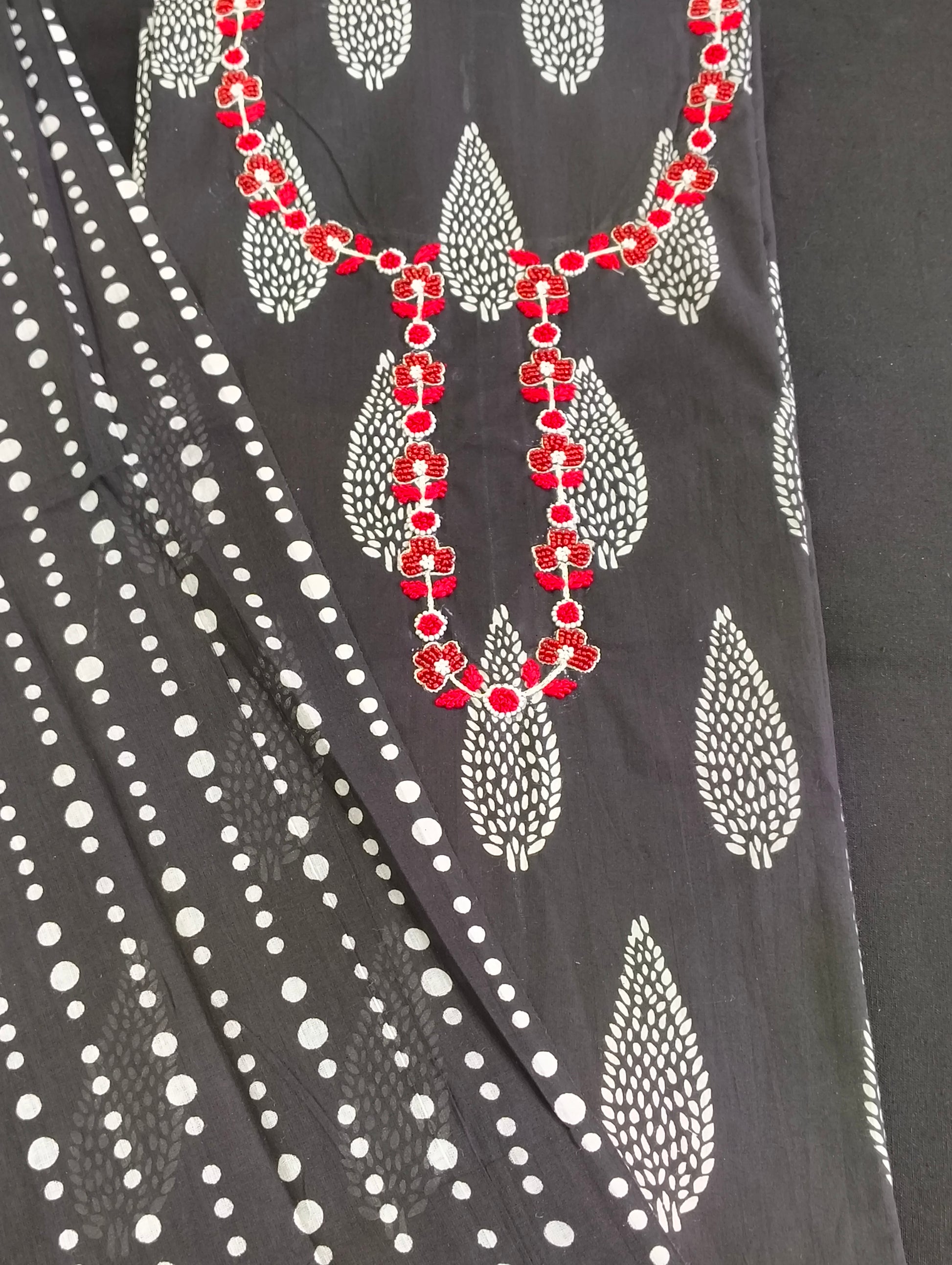 Crafted from high-quality cotton material, this product boasts intricate hand embroidery for a touch of elegance and sophistication. Soft and breathable, this item is perfect for all-day wear and will add a unique and stylish element to any outfit. Elevate your wardrobe with this beautiful and expertly crafted piece.