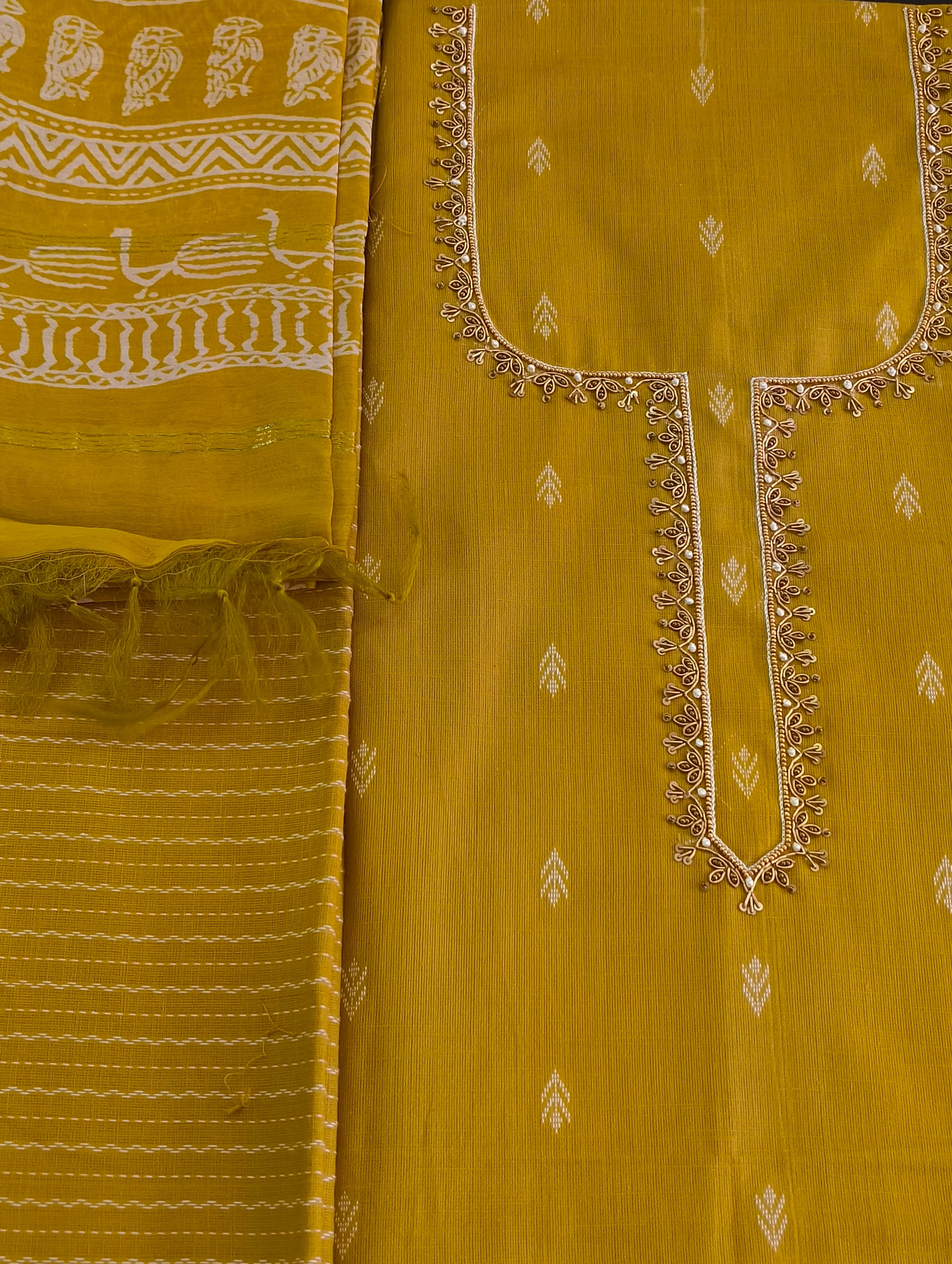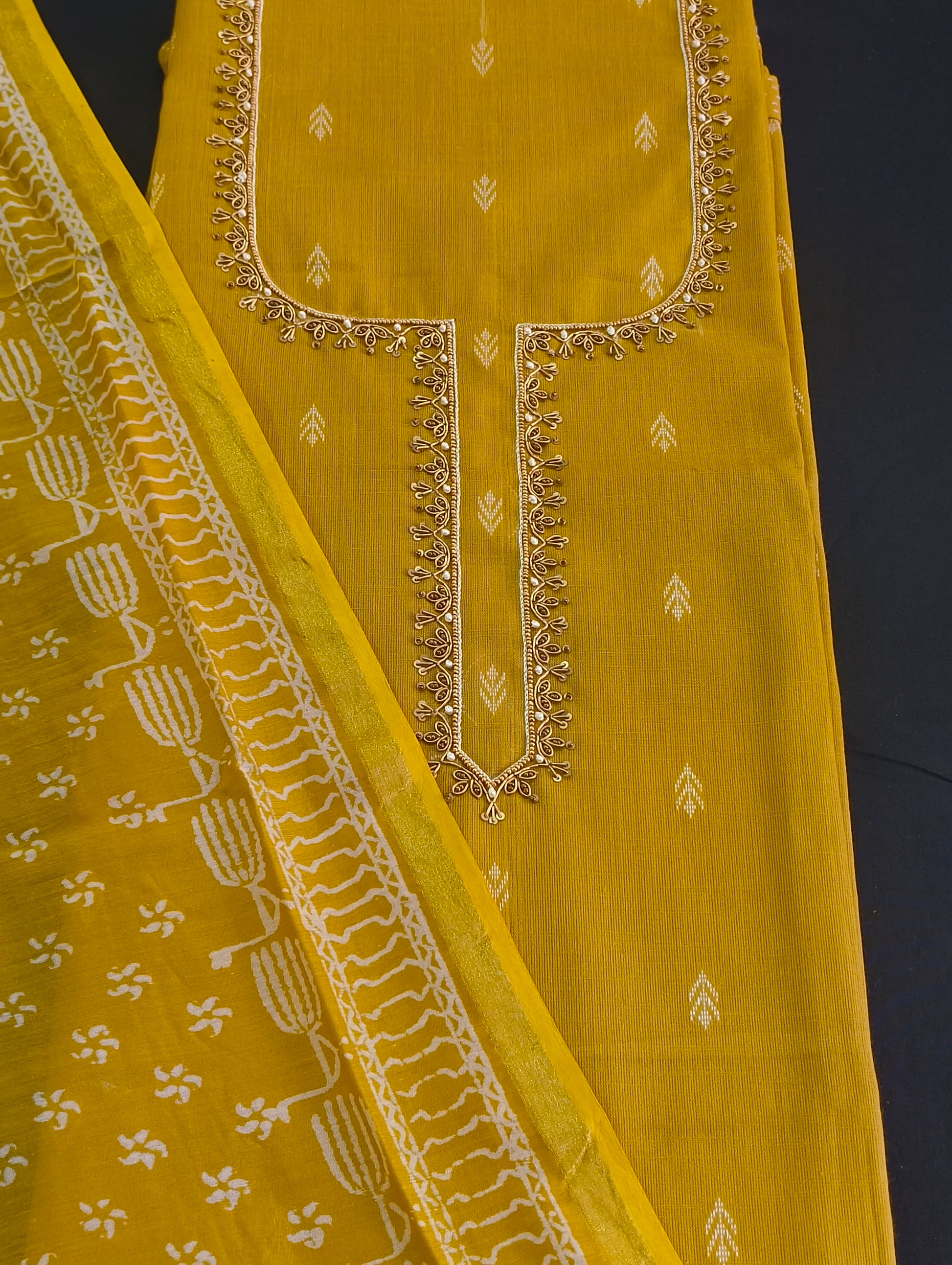 Experience the luxurious feel of Chanderi material and admire the intricate hand embroidery on this product. With this combination, you get both comfort and elegance. Add a touch of traditional charm to your wardrobe.