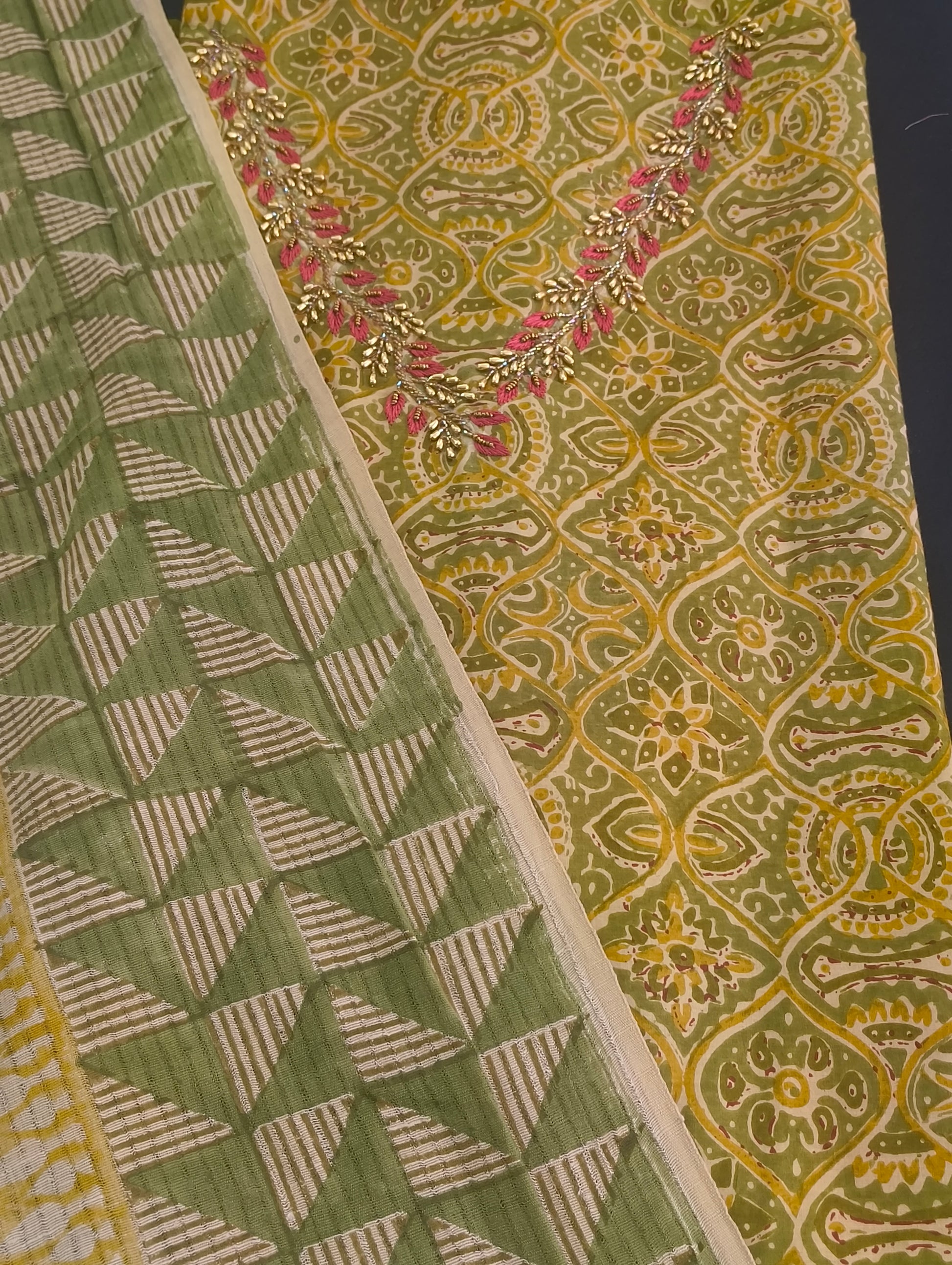 Cotton material with hand embroidery